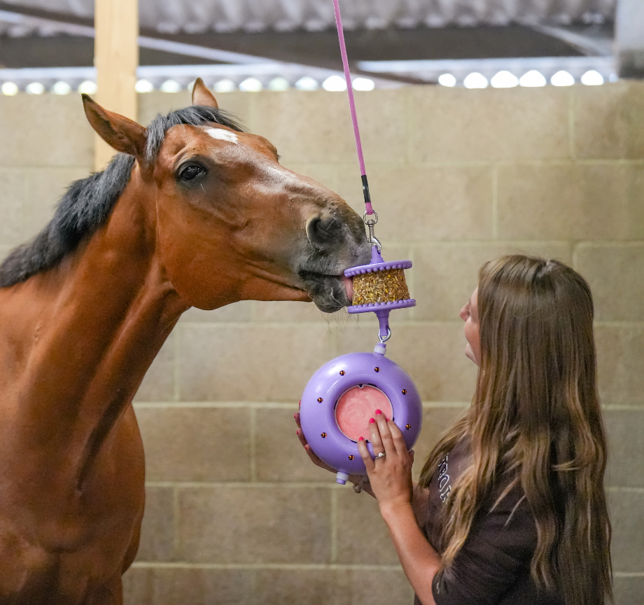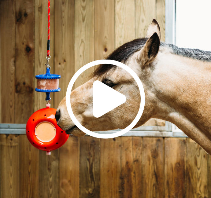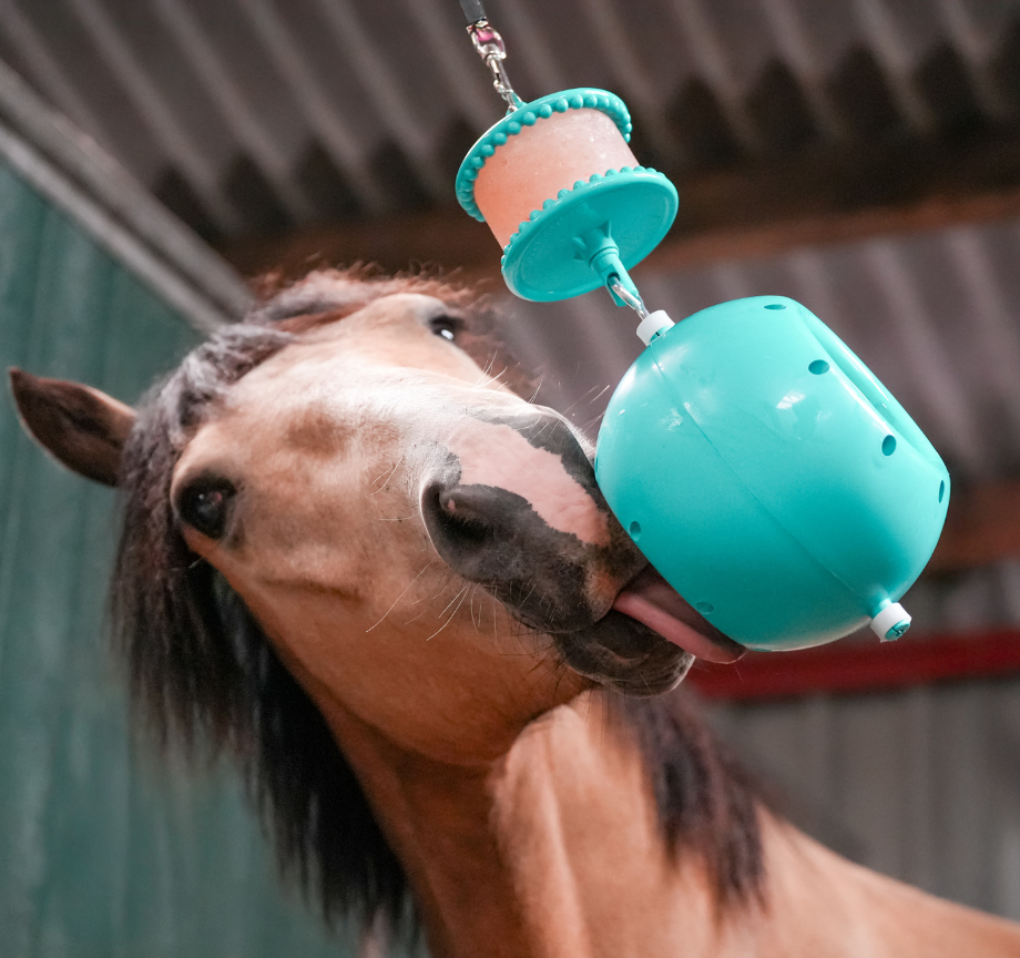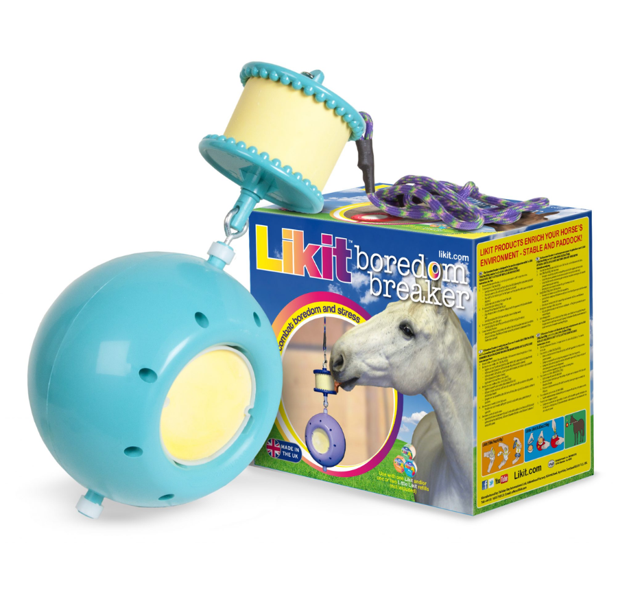 The Boredom Breaker is one of our more challenging toys and is ideal for experienced Likit users or horses that are particularly motivated by food. Ensure the ball is hung at wither height, well away from any walls to encourage the horse to lick rather than bite. We would recommend using one of our salt based Likits on the top Likit Holder and using either 1 or 2 Little Likits in the ball. As with the Tongue Twister we would recommend alternating both the flavours and the location of the ball regularly to keep the horse’s interest.