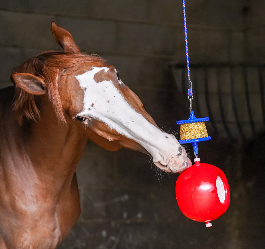 Red TT 2Secondly, the Tongue Twister, this product is designed to be fixed to a wall at wither height and is ideal for horses in smaller stables or for those that tend to ‘spook’ easily. Simply insert one or two Little Likits and as the horse uses the toy, the ball will spin making it harder for them to reach their reward. To increase the challenge insert just one Little Likit, gravity will pull the treat down. Studies have shown that environmental enrichment works best when animals are challenged with changes in their environment. Try regularly changing the flavour of the Little Likits and even more the location of the toy from time to time.