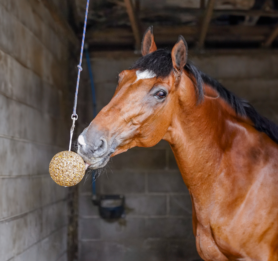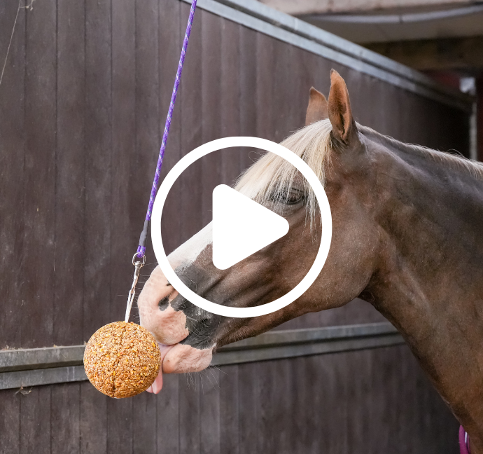 The Boredom Breaker is one of our more challenging toys and is ideal for experienced Likit users or horses that are particularly motivated by food. Ensure the ball is hung at wither height, well away from any walls to encourage the horse to lick rather than bite. We would recommend using one of our salt based Likits on the top Likit Holder and using either 1 or 2 Little Likits in the ball. As with the Tongue Twister we would recommend alternating both the flavours and the location of the ball regularly to keep the horse’s interest.