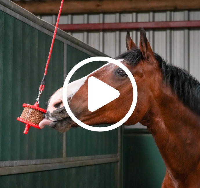 The Boredom Breaker is one of our more challenging toys and is ideal for experienced Likit users or horses that are particularly motivated by food. Ensure the ball is hung at wither height, well away from any walls to encourage the horse to lick rather than bite. We would recommend using one of our salt based Likits on the top Likit Holder and using either 1 or 2 Little Likits in the ball. As with the Tongue Twister we would recommend alternating both the flavours and the location of the ball regularly to keep the horse’s interest.