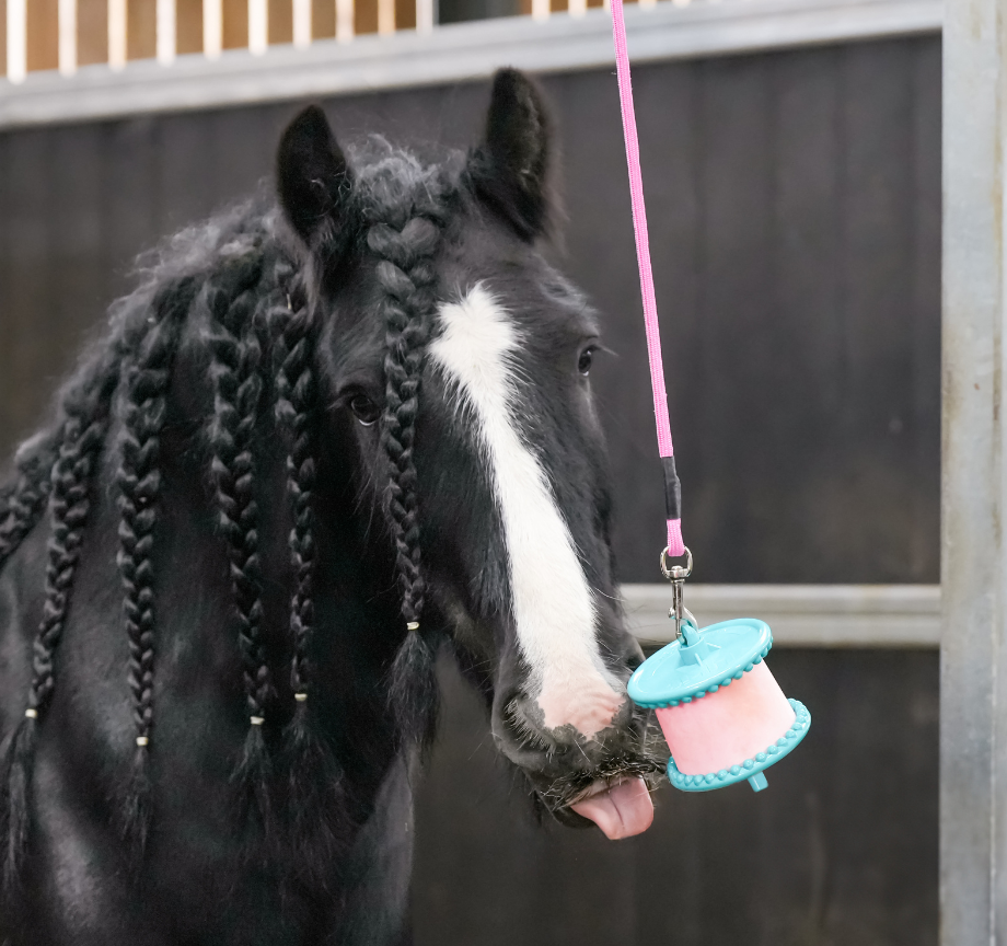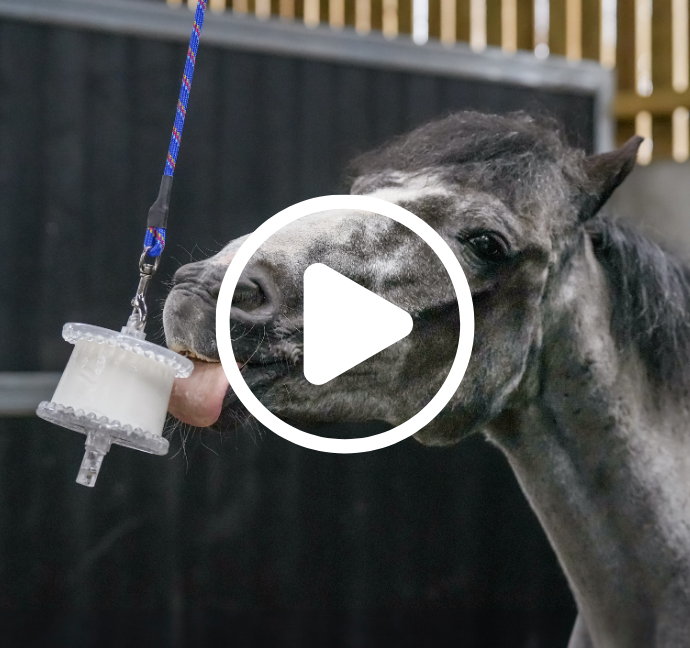 The Boredom Breaker is one of our more challenging toys and is ideal for experienced Likit users or horses that are particularly motivated by food. Ensure the ball is hung at wither height, well away from any walls to encourage the horse to lick rather than bite. We would recommend using one of our salt based Likits on the top Likit Holder and using either 1 or 2 Little Likits in the ball. As with the Tongue Twister we would recommend alternating both the flavours and the location of the ball regularly to keep the horse’s interest.