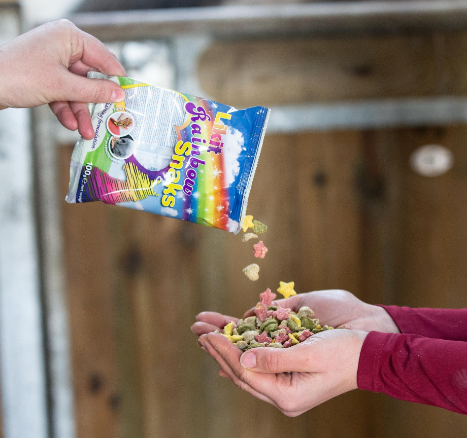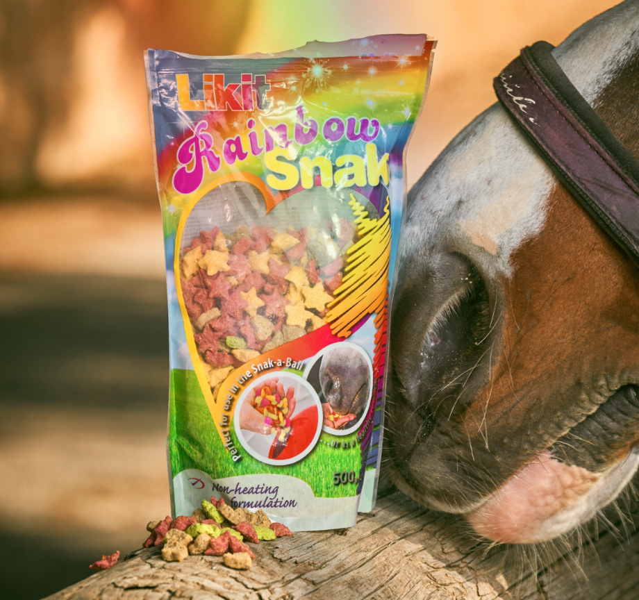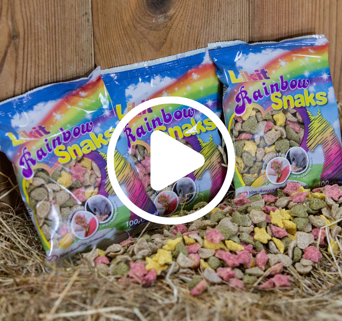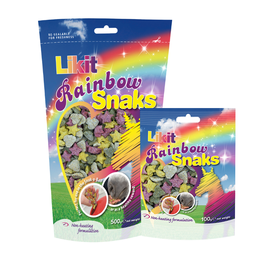 Our yummy Rainbow Likit Snaks are tasty, crunchy, heart & star shaped nibbles in four delicious natural flavours (Apple, Mint, Strawberry & Banana) that fit easily inside the Likit Snak-a-Ball to alleviate boredom, or can be fed from the hand as a reward or training aid.